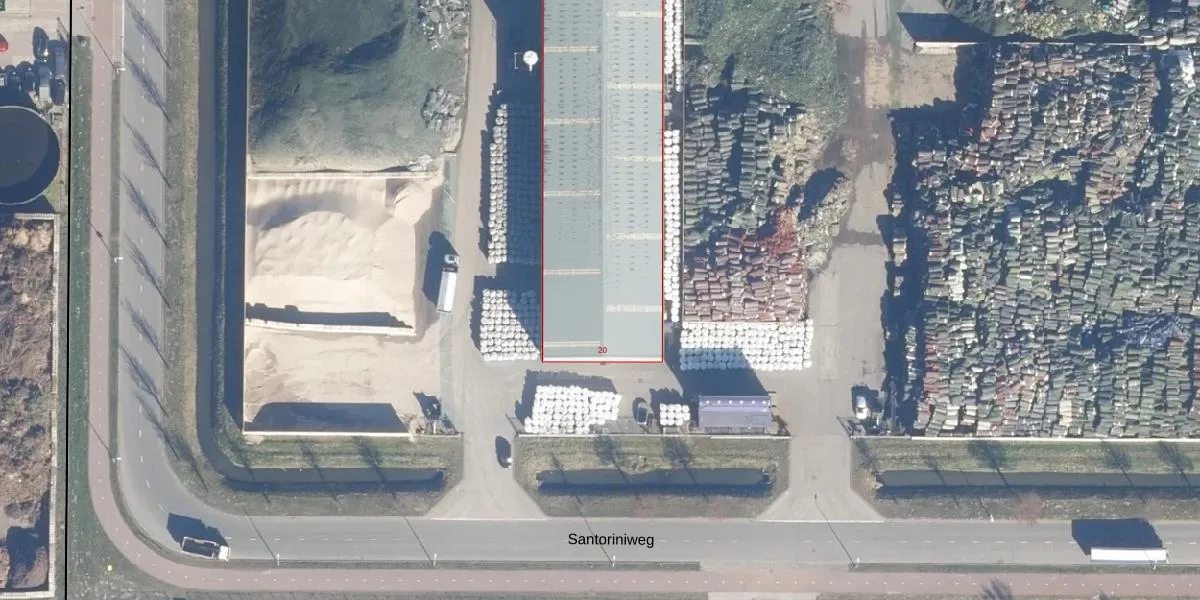 Het adres Santoriniweg 20 bevindt zich in de plaats Amsterdam, in de gemeente Amsterdam en de provincie Noord-Holland. Het object heeft een oppervlakte van 1655 m², wat relatief groot is. Het perceel waarop het adres ligt is 55,7 ha groot. Dit is het adres met de grootste oppervlakte van alle adressen in de straat. Gemiddeld hebben de objecten in de straat een oppervlakte van 791 m². De kleinste oppervlakte is er 275 m². Het pand waarin Santoriniweg 20 ligt is gebouwd in het jaar 2020. Panden die gebouwd zijn na het jaar 1984 noemen we hier relatief nieuw. Vergeleken met de andere panden in de straat is dit gebouw nieuw. Het vroegste bouwjaar is er 1997 en het laatste is 2023. Het verblijfsobject heeft de volgende gebruiksdoelen: 'industriefunctie'.