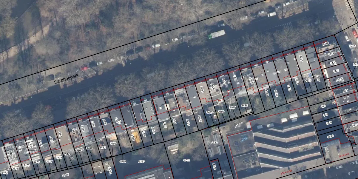 Het perceel waarop Sarphatipark 114-2 staat heeft een oppervlakte van 180 m². Dit is een middelgroot perceel. De perceeloppervlakte wordt geregistreerd door het Kadaster. Gedetailleerde informatie over de maten van dit perceel kunt u vinden in het rapport Kadastrale kaart met maatvoering van Sarphatipark 114-2.