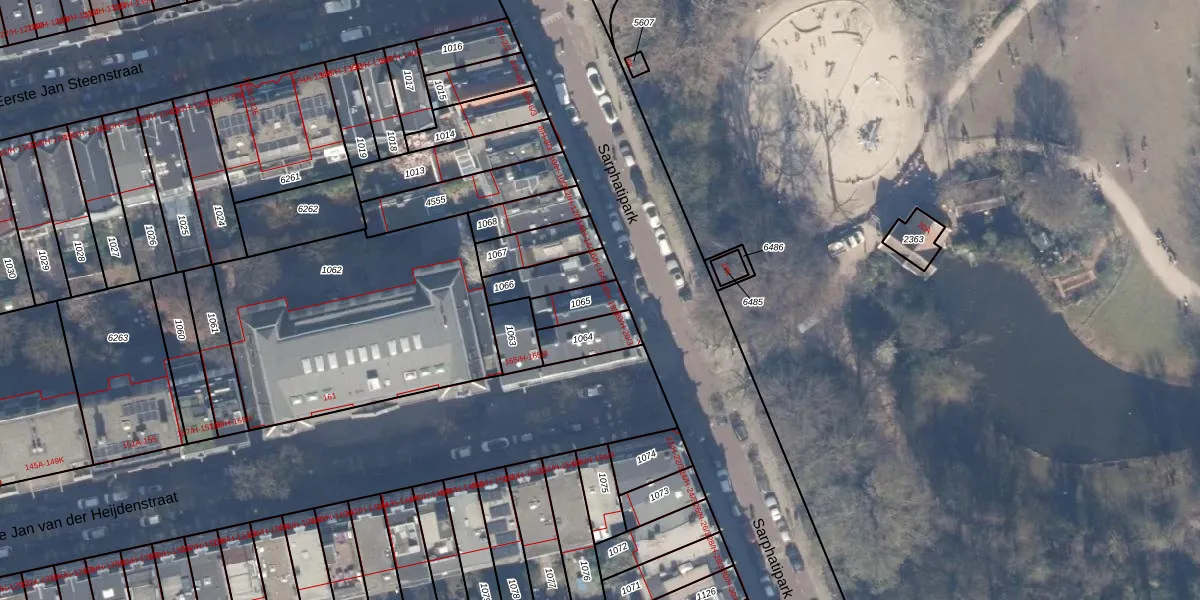 Het perceel waarop Sarphatipark 18-H staat heeft een oppervlakte van 85 m². Dit is een klein perceel. De perceeloppervlakte wordt geregistreerd door het Kadaster. Gedetailleerde informatie over de maten van dit perceel kunt u vinden in het rapport Kadastrale kaart met maatvoering van Sarphatipark 18-H.