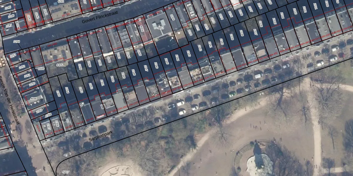 Sarphatipark 25-H is gelegen op kadastraal perceel ASD14R2345. Deze kadastrale aanduiding is uniek en wordt gebruikt door het Kadaster om eigendomsrechten en andere zakelijke rechten vast te leggen. Het perceel maakt onderdeel uit van de kadastrale gemeente Amsterdam.
