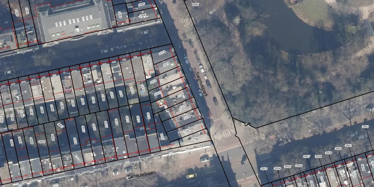 Het perceel waarop Sarphatipark 30-H staat heeft een oppervlakte van 140 m². Dit is een middelgroot perceel. De perceeloppervlakte wordt geregistreerd door het Kadaster. Gedetailleerde informatie over de maten van dit perceel kunt u vinden in het rapport Kadastrale kaart met maatvoering van Sarphatipark 30-H.