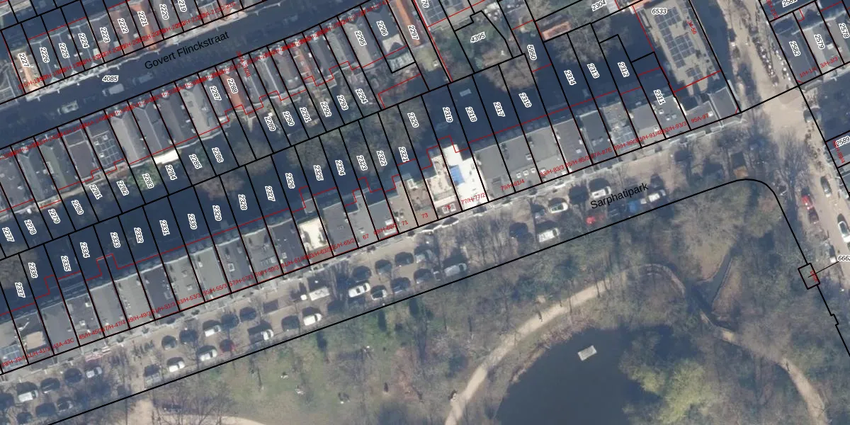 Het perceel waarop Sarphatipark 73 staat heeft een oppervlakte van 139 m². Dit is een middelgroot perceel. De perceeloppervlakte wordt geregistreerd door het Kadaster. Gedetailleerde informatie over de maten van dit perceel kunt u vinden in het rapport Kadastrale kaart met maatvoering van Sarphatipark 73.