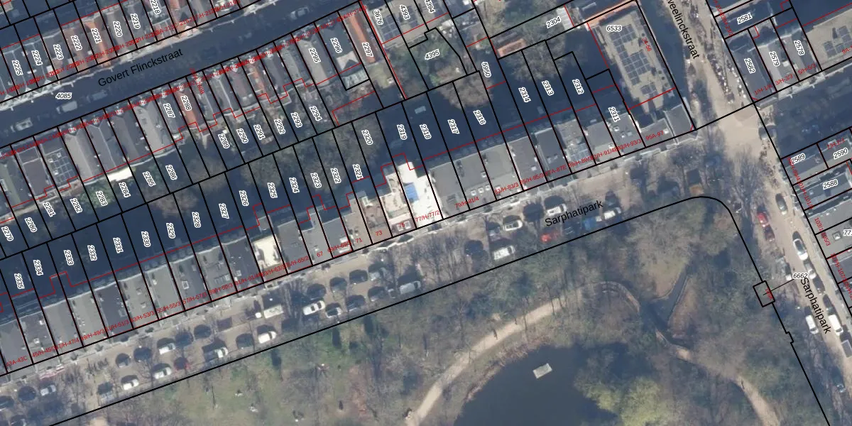Het perceel waarop Sarphatipark 77-2 staat heeft een oppervlakte van 194 m². Dit is een middelgroot perceel. De perceeloppervlakte wordt geregistreerd door het Kadaster. Gedetailleerde informatie over de maten van dit perceel kunt u vinden in het rapport Kadastrale kaart met maatvoering van Sarphatipark 77-2.