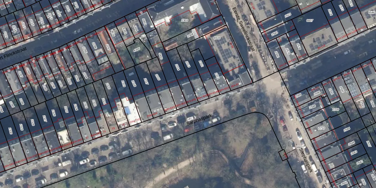 Het perceel waarop Sarphatipark 87-A staat heeft een oppervlakte van 181 m². Dit is een middelgroot perceel. De perceeloppervlakte wordt geregistreerd door het Kadaster. Gedetailleerde informatie over de maten van dit perceel kunt u vinden in het rapport Kadastrale kaart met maatvoering van Sarphatipark 87-A.