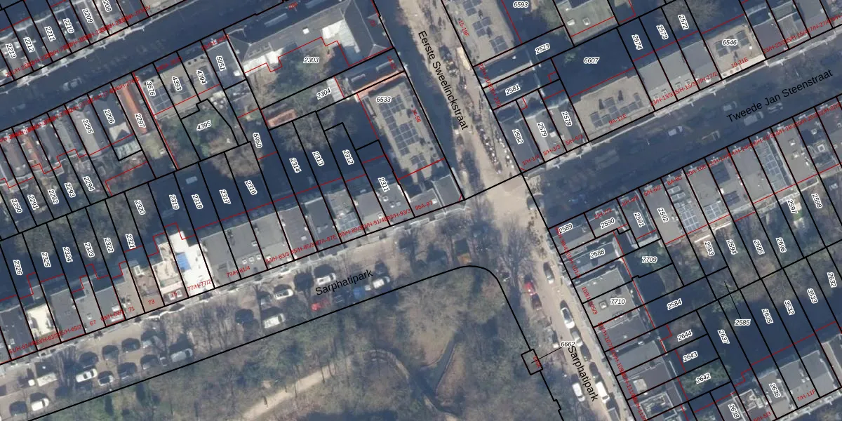 Sarphatipark 95-A is gelegen op kadastraal perceel ASD14R6533. Deze kadastrale aanduiding is uniek en wordt gebruikt door het Kadaster om eigendomsrechten en andere zakelijke rechten vast te leggen. Het perceel maakt onderdeel uit van de kadastrale gemeente Amsterdam.