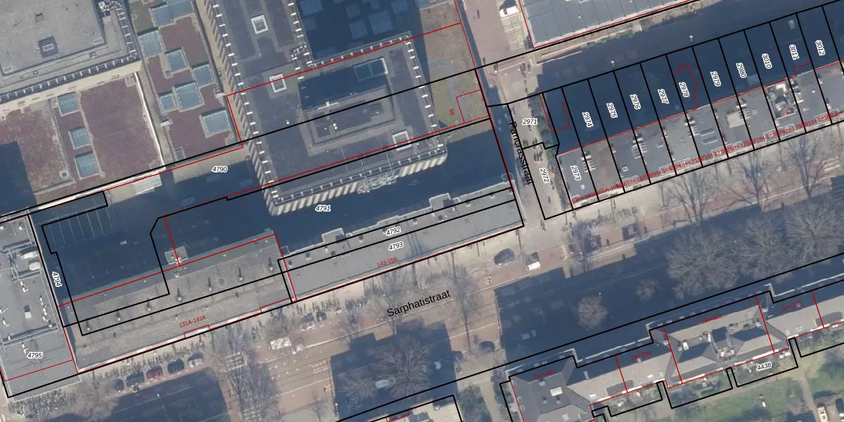 Het perceel waarop Sarphatistraat 145-F staat heeft een oppervlakte van 1623 m². Dit is een zeer groot perceel. De perceeloppervlakte wordt geregistreerd door het Kadaster. Gedetailleerde informatie over de maten van dit perceel kunt u vinden in het rapport Kadastrale kaart met maatvoering van Sarphatistraat 145-F.