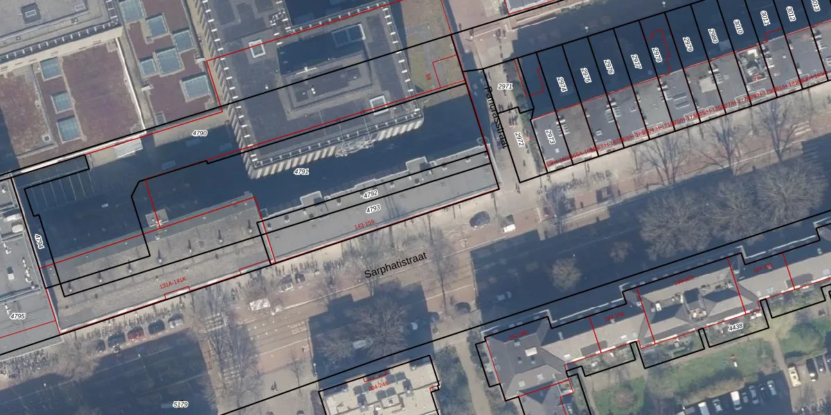Het perceel waarop Sarphatistraat 155-L staat heeft een oppervlakte van 410 m². Dit is een groot perceel. De perceeloppervlakte wordt geregistreerd door het Kadaster. Gedetailleerde informatie over de maten van dit perceel kunt u vinden in het rapport Kadastrale kaart met maatvoering van Sarphatistraat 155-L.