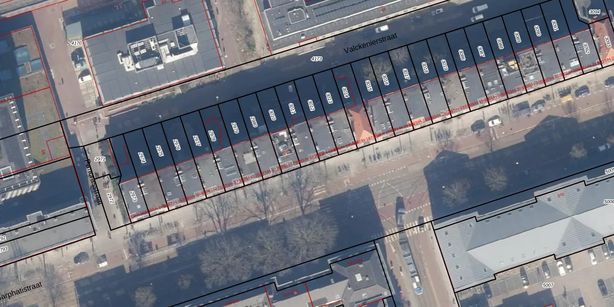 Het adres is gelegen op perceel 3011 in de sectie O en de kadastrale gemeente Amsterdam. De kadastrale aanduiding is aldus ASD11-O-3011. De gemiddelde perceelgrootte in Amsterdam is 781,11 m². Dit perceel is kleiner: de perceeloppervlakte bedraagt 178 m². Het kleinste perceel in de kadastrale gemeente is 1 m² groot. De grootste perceeloppervlakte is 12,0 ha. Op het perceel liggen in totaal 4 adressen. De huidige grenzen van het perceel zijn digitaal in de Basisregistratie Kadaster (BRK) geregistreerd op 13-11-2006.