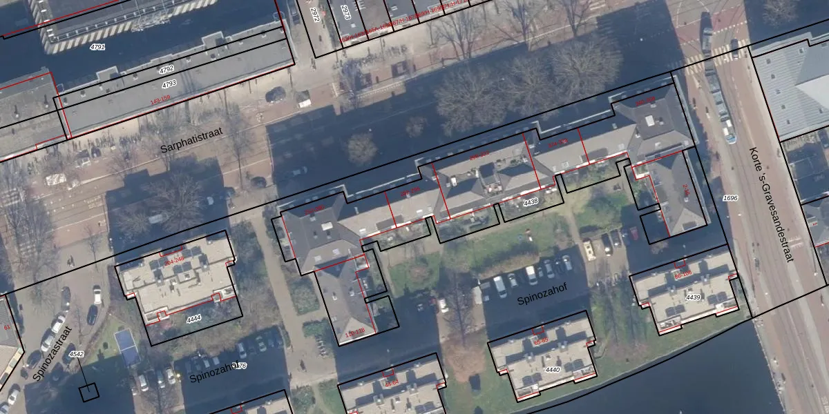 Het perceel waarop Sarphatistraat 288 staat heeft een oppervlakte van 3070 m². Dit is een zeer groot perceel. De perceeloppervlakte wordt geregistreerd door het Kadaster. Gedetailleerde informatie over de maten van dit perceel kunt u vinden in het rapport Kadastrale kaart met maatvoering van Sarphatistraat 288.