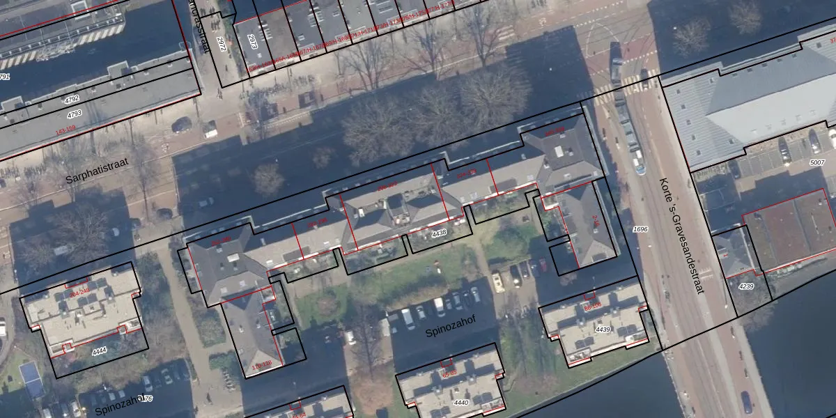 Het perceel waarop Sarphatistraat 322 staat heeft een oppervlakte van 3070 m². Dit is een zeer groot perceel. De perceeloppervlakte wordt geregistreerd door het Kadaster. Gedetailleerde informatie over de maten van dit perceel kunt u vinden in het rapport Kadastrale kaart met maatvoering van Sarphatistraat 322.