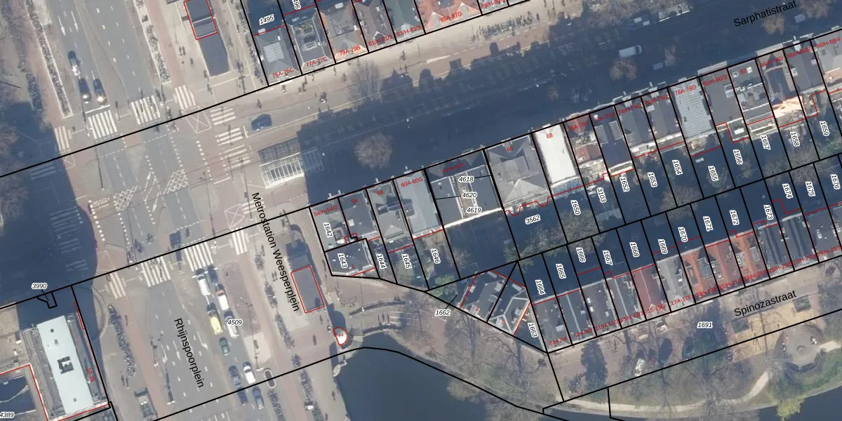 Het adres ligt op het perceel ASD11-O-1646, dat zich in de kadastrale gemeente Amsterdam bevindt. Het perceel is kleiner dan gemiddeld in Amsterdam. Het perceel is 210 m² groot, terwijl het gemiddelde ligt op 781,11 m². Het kleinste perceel in de kadastrale gemeente is 1 m² groot. De grootste perceeloppervlakte is 12,0 ha. Op het perceel zijn 7 adressen aanwezig. In de Basisregistratie Kadaster (BRK) werden de grenzen van het perceel geregistreerd op 13-11-2006.