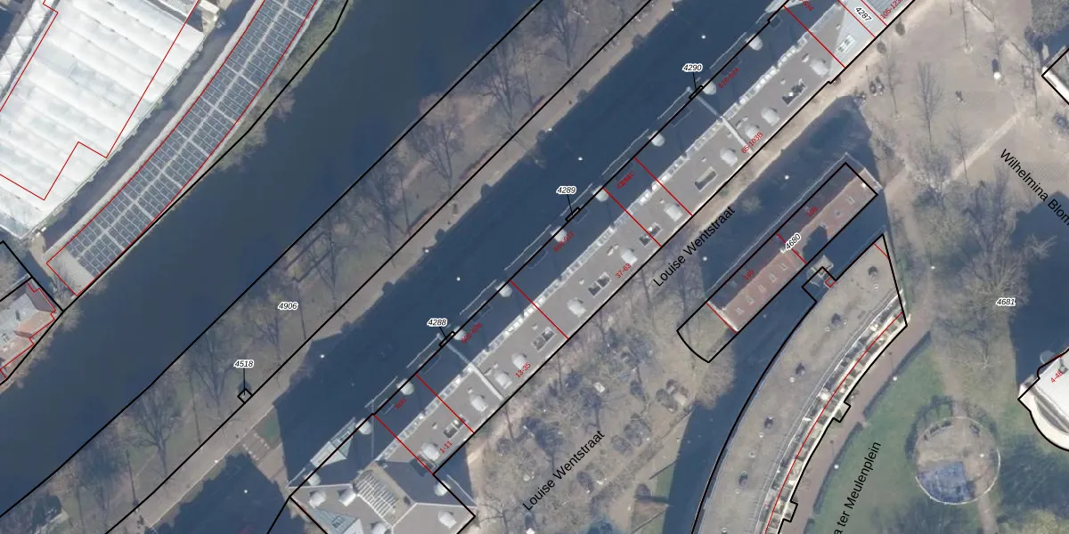 Het perceel waarop het adres ligt is ASD11-O-4287. De afkorting 'ASD11' staat voor kadastrale gemeente Amsterdam. De gemiddelde perceeloppervlakte in de kadastrale gemeente Amsterdam is 781,11 m². Dit perceel is met zijn 4914 m² dus groter dan gemiddeld. Het kleinste perceel in de kadastrale gemeente is 1 m² groot. De grootste perceeloppervlakte is 12,0 ha. Er zijn 213 adressen aanwezig op het perceel. De huidige grenzen van het perceel zijn digitaal in de Basisregistratie Kadaster (BRK) geregistreerd op 27-10-2006.