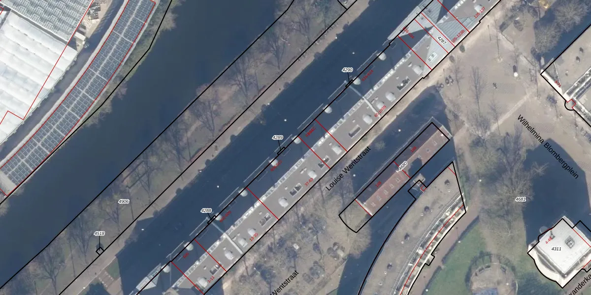 Het perceel waarop het adres ligt is ASD11-O-4287. De afkorting 'ASD11' staat voor kadastrale gemeente Amsterdam. De gemiddelde perceeloppervlakte in de kadastrale gemeente Amsterdam is 781,11 m². Dit perceel is met zijn 4914 m² dus groter dan gemiddeld. Het kleinste perceel in de kadastrale gemeente is 1 m² groot. De grootste perceeloppervlakte is 12,0 ha. Er zijn 213 adressen aanwezig op het perceel. In de Basisregistratie Kadaster (BRK) werden de grenzen van het perceel geregistreerd op 27-10-2006.