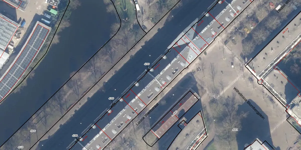 Het perceel waarop het adres ligt is ASD11-O-4287. De afkorting 'ASD11' staat voor kadastrale gemeente Amsterdam. De gemiddelde perceeloppervlakte in de kadastrale gemeente Amsterdam is 781,11 m². Dit perceel is met zijn 4914 m² dus groter dan gemiddeld. Het kleinste perceel in de kadastrale gemeente is 1 m² groot. De grootste perceeloppervlakte is 12,0 ha. Er zijn 213 adressen aanwezig op het perceel. In de Basisregistratie Kadaster (BRK) werden de grenzen van het perceel geregistreerd op 27-10-2006.