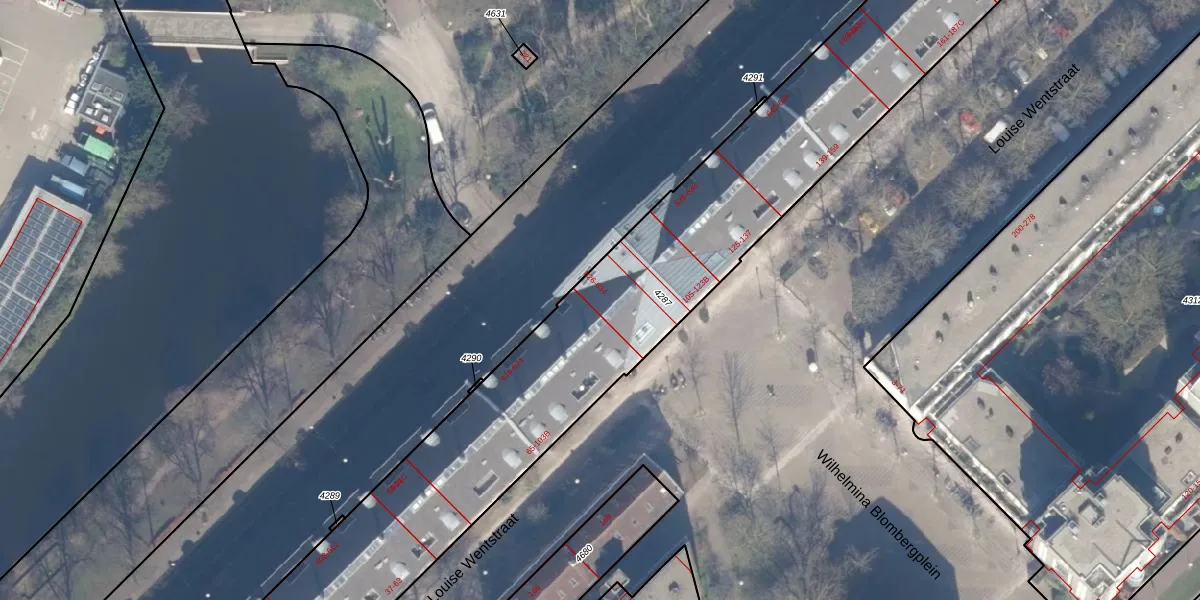 Het perceel waarop het adres ligt is ASD11-O-4287. De afkorting 'ASD11' staat voor kadastrale gemeente Amsterdam. De gemiddelde perceeloppervlakte in de kadastrale gemeente Amsterdam is 781,11 m². Dit perceel is met zijn 4914 m² dus groter dan gemiddeld. Het kleinste perceel in de kadastrale gemeente is 1 m² groot. De grootste perceeloppervlakte is 12,0 ha. Op het perceel zijn 213 adressen aanwezig. De huidige grenzen van het perceel zijn digitaal in de Basisregistratie Kadaster (BRK) geregistreerd op 27-10-2006.