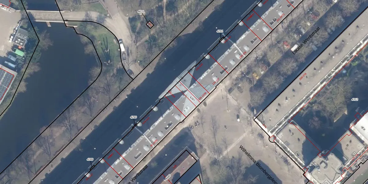 Het perceel waarop het adres ligt is ASD11-O-4287. De afkorting 'ASD11' staat voor kadastrale gemeente Amsterdam. De gemiddelde perceeloppervlakte in de kadastrale gemeente Amsterdam is 781,11 m². Dit perceel is met zijn 4914 m² dus groter dan gemiddeld. Het kleinste perceel in de kadastrale gemeente is 1 m² groot. De grootste perceeloppervlakte is 12,0 ha. Op het perceel zijn 213 adressen aanwezig. In de Basisregistratie Kadaster (BRK) werden de grenzen van het perceel geregistreerd op 27-10-2006.