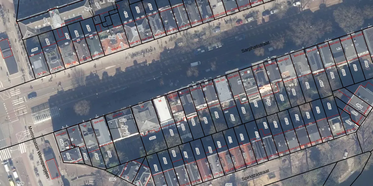 Het perceel waarop Sarphatistraat 72-A staat heeft een oppervlakte van 177 m². Dit is een middelgroot perceel. De perceeloppervlakte wordt geregistreerd door het Kadaster. Gedetailleerde informatie over de maten van dit perceel kunt u vinden in het rapport Kadastrale kaart met maatvoering van Sarphatistraat 72-A.