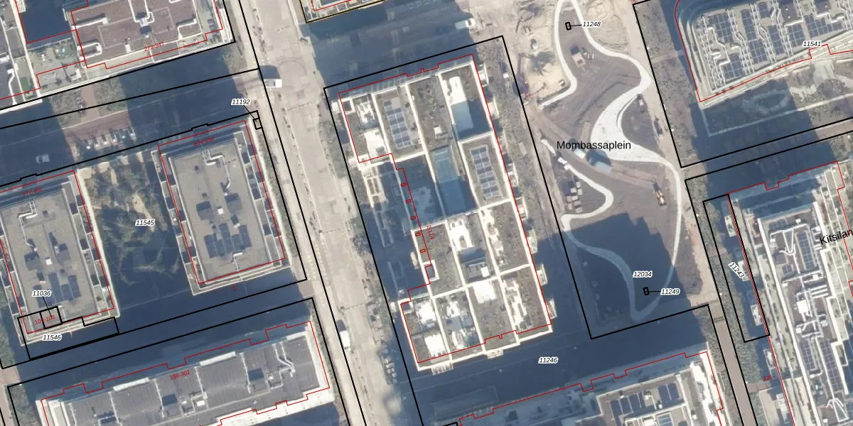 Het adres ligt op het perceel ASD07-K-11246, dat zich in de kadastrale gemeente Amsterdam bevindt. Het perceel is met 6190 m² relatief groot. Het gemiddelde ligt in de kadastrale gemeente Amsterdam op 2997,17 m². De grootste perceeloppervlakte in de kadastrale gemeente is 56,2 ha. De kleinste oppervlakte bedraagt 0 m². Op het perceel zijn 163 adressen aanwezig. In de Basisregistratie Kadaster (BRK) werden de grenzen van het perceel geregistreerd op 20-02-2024.