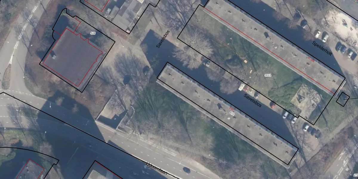 Het perceel waarop Savelsbos 12 staat heeft een oppervlakte van 950 m². Dit is een groot perceel. De perceeloppervlakte wordt geregistreerd door het Kadaster. Gedetailleerde informatie over de maten van dit perceel kunt u vinden in het rapport Kadastrale kaart met maatvoering van Savelsbos 12.