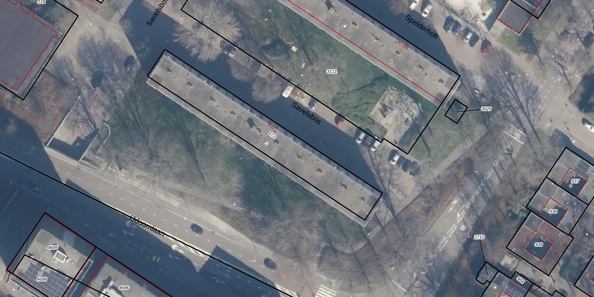 Het perceel waarop Savelsbos 39 staat heeft een oppervlakte van 950 m². Dit is een groot perceel. De perceeloppervlakte wordt geregistreerd door het Kadaster. Gedetailleerde informatie over de maten van dit perceel kunt u vinden in het rapport Kadastrale kaart met maatvoering van Savelsbos 39.