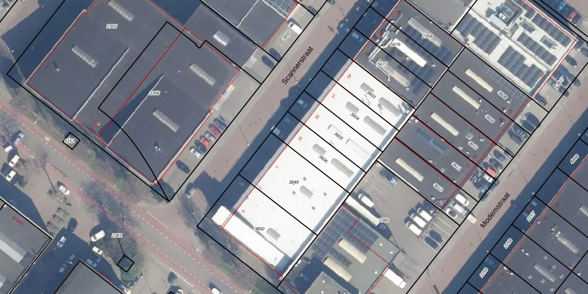 Scannerstraat 13 is gelegen op kadastraal perceel ASD28AH3606. Deze kadastrale aanduiding is uniek en wordt gebruikt door het Kadaster om eigendomsrechten en andere zakelijke rechten vast te leggen. Het perceel maakt onderdeel uit van de kadastrale gemeente Amsterdam.