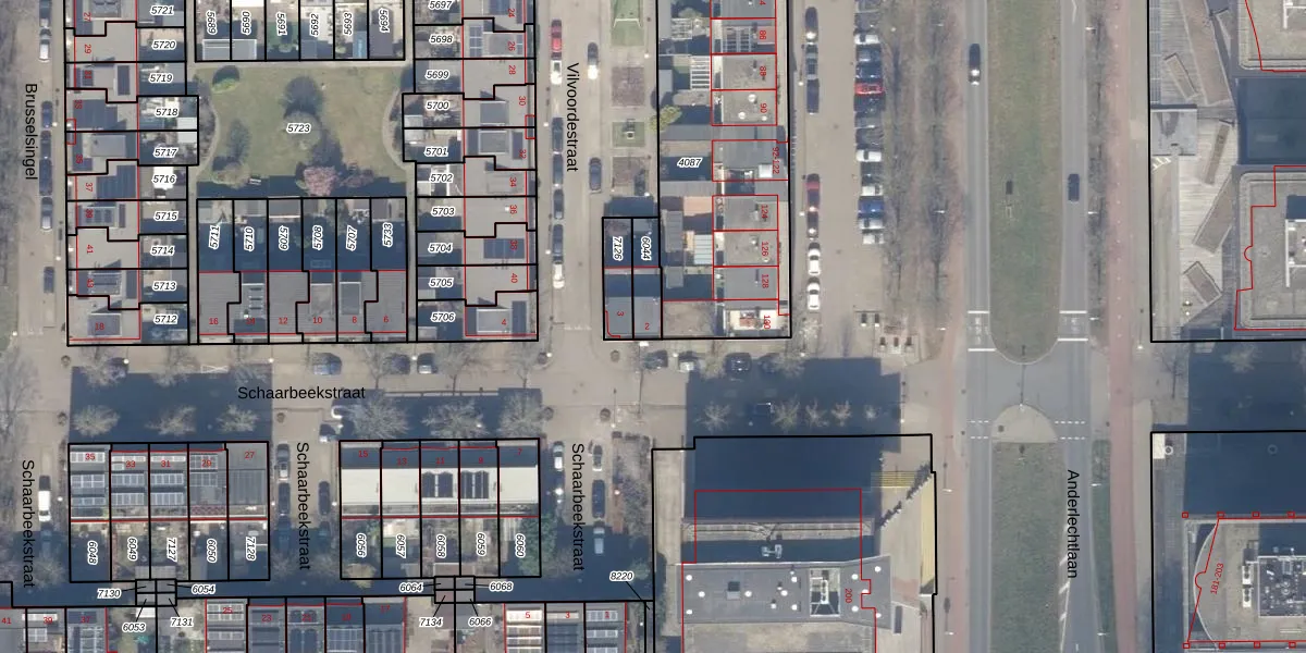 Het perceel waarop Schaarbeekstraat 2 staat heeft een oppervlakte van 80 m². Dit is een klein perceel. De perceeloppervlakte wordt geregistreerd door het Kadaster. Gedetailleerde informatie over de maten van dit perceel kunt u vinden in het rapport Kadastrale kaart met maatvoering van Schaarbeekstraat 2.
