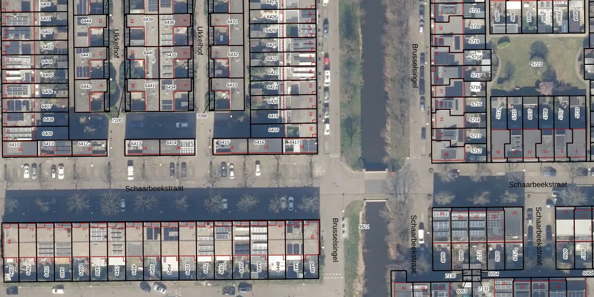 Gebruik de zoekbalk of klik op een perceel voor informatie over de adressen binnen dit perceel.