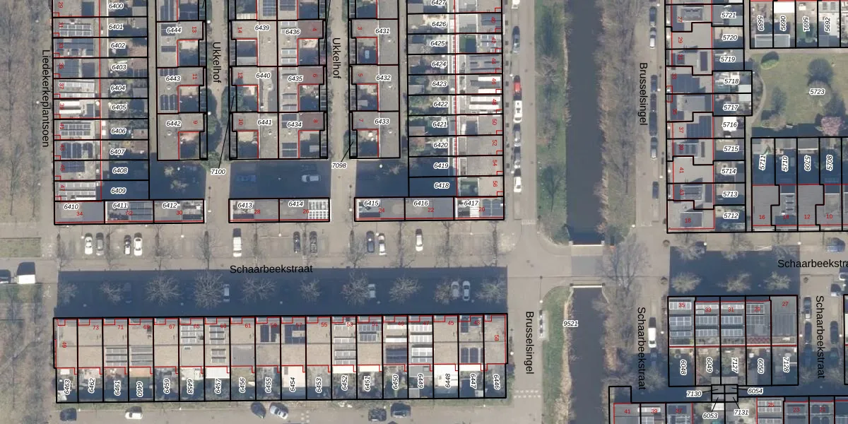 Het perceel waarop Schaarbeekstraat 22 staat heeft een oppervlakte van 65 m². Dit is een klein perceel. De perceeloppervlakte wordt geregistreerd door het Kadaster. Gedetailleerde informatie over de maten van dit perceel kunt u vinden in het rapport Kadastrale kaart met maatvoering van Schaarbeekstraat 22.
