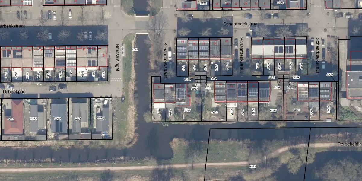 Gebruik de zoekbalk of klik op een perceel voor informatie over de adressen binnen dit perceel.