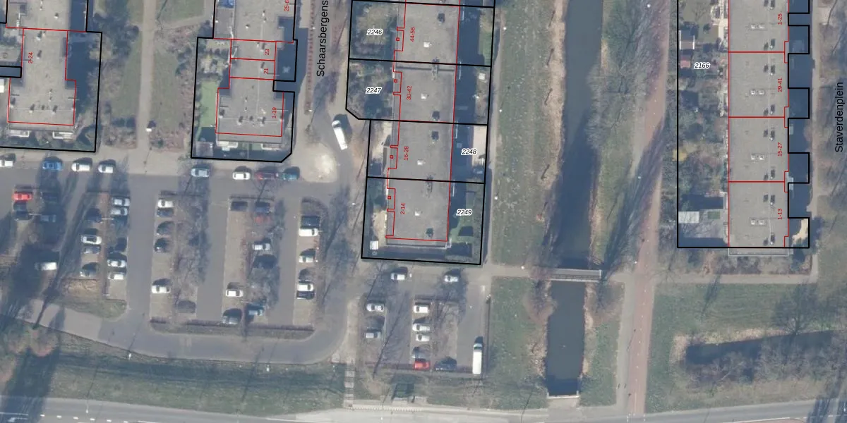 Schaarsbergenstraat 14 is gelegen op kadastraal perceel WPK02L2249. Deze kadastrale aanduiding is uniek en wordt gebruikt door het Kadaster om eigendomsrechten en andere zakelijke rechten vast te leggen. Het perceel maakt onderdeel uit van de kadastrale gemeente Weesperkarspel.