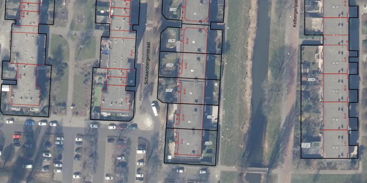 Schaarsbergenstraat 30 is gelegen op kadastraal perceel WPK02L2247. Deze kadastrale aanduiding is uniek en wordt gebruikt door het Kadaster om eigendomsrechten en andere zakelijke rechten vast te leggen. Het perceel maakt onderdeel uit van de kadastrale gemeente Weesperkarspel.