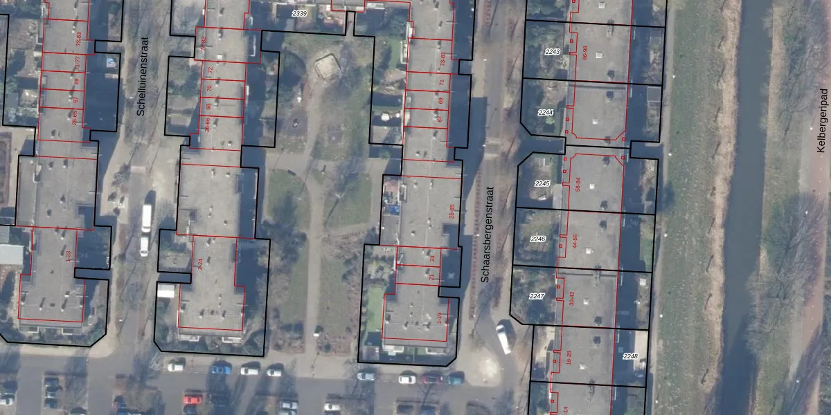 Het perceel waarop Schaarsbergenstraat 37 staat heeft een oppervlakte van 4984 m². Dit is een zeer groot perceel. De perceeloppervlakte wordt geregistreerd door het Kadaster. Gedetailleerde informatie over de maten van dit perceel kunt u vinden in het rapport Kadastrale kaart met maatvoering van Schaarsbergenstraat 37.