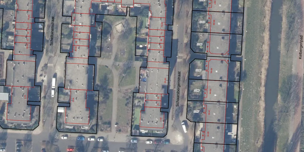 Het perceel waarop Schaarsbergenstraat 39 staat heeft een oppervlakte van 4984 m². Dit is een zeer groot perceel. De perceeloppervlakte wordt geregistreerd door het Kadaster. Gedetailleerde informatie over de maten van dit perceel kunt u vinden in het rapport Kadastrale kaart met maatvoering van Schaarsbergenstraat 39.