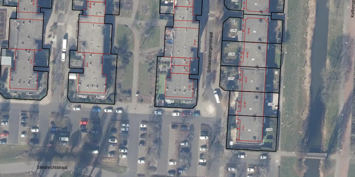 Schaarsbergenstraat 5 is gelegen op kadastraal perceel WPK02L2339. Deze kadastrale aanduiding is uniek en wordt gebruikt door het Kadaster om eigendomsrechten en andere zakelijke rechten vast te leggen. Het perceel maakt onderdeel uit van de kadastrale gemeente Weesperkarspel.