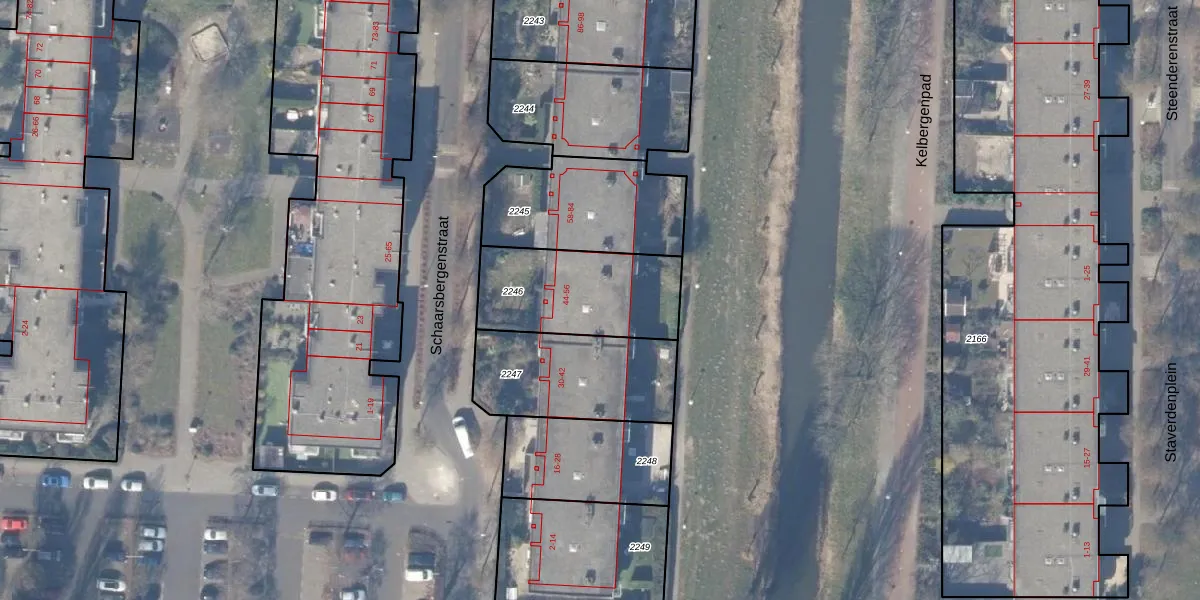 Het perceel waarop Schaarsbergenstraat 56 staat heeft een oppervlakte van 460 m². Dit is een groot perceel. De perceeloppervlakte wordt geregistreerd door het Kadaster. Gedetailleerde informatie over de maten van dit perceel kunt u vinden in het rapport Kadastrale kaart met maatvoering van Schaarsbergenstraat 56.
