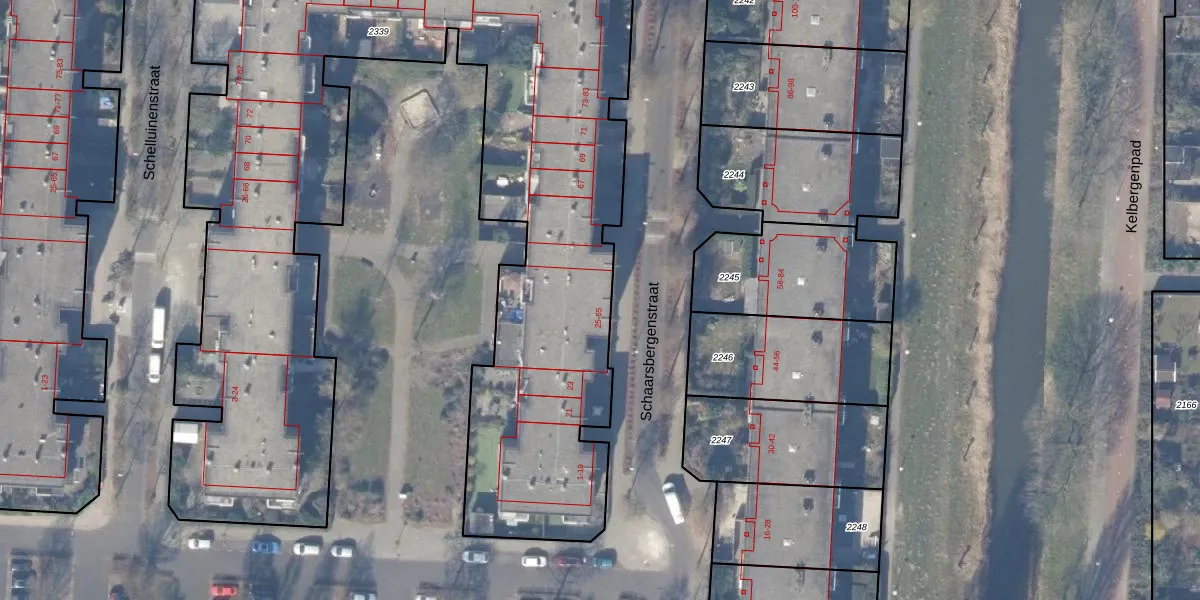 Het perceel waarop Schaarsbergenstraat 63 staat heeft een oppervlakte van 4984 m². Dit is een zeer groot perceel. De perceeloppervlakte wordt geregistreerd door het Kadaster. Gedetailleerde informatie over de maten van dit perceel kunt u vinden in het rapport Kadastrale kaart met maatvoering van Schaarsbergenstraat 63.