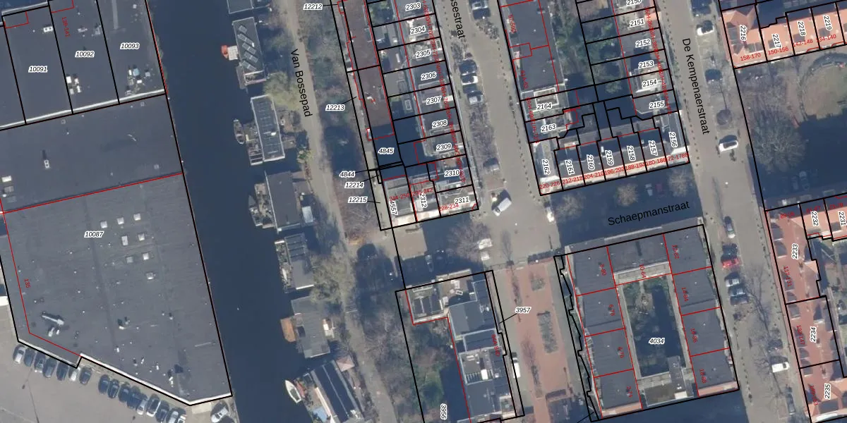 Het adres is gelegen op perceel 2312 in de sectie Y en de kadastrale gemeente Amsterdam. De kadastrale aanduiding is aldus ASD21-Y-2312. Het perceel is kleiner dan gemiddeld in Amsterdam. Het perceel is 72 m² groot, terwijl het gemiddelde ligt op 770,38 m². Het grootste perceel in de kadastrale gemeente is 7,1 ha. Het kleinste perceel heeft een oppervlakte van 0 m². Er zijn 4 adressen aanwezig op het perceel. De huidige grenzen van het perceel zijn digitaal in de Basisregistratie Kadaster (BRK) geregistreerd op 19-11-2019.