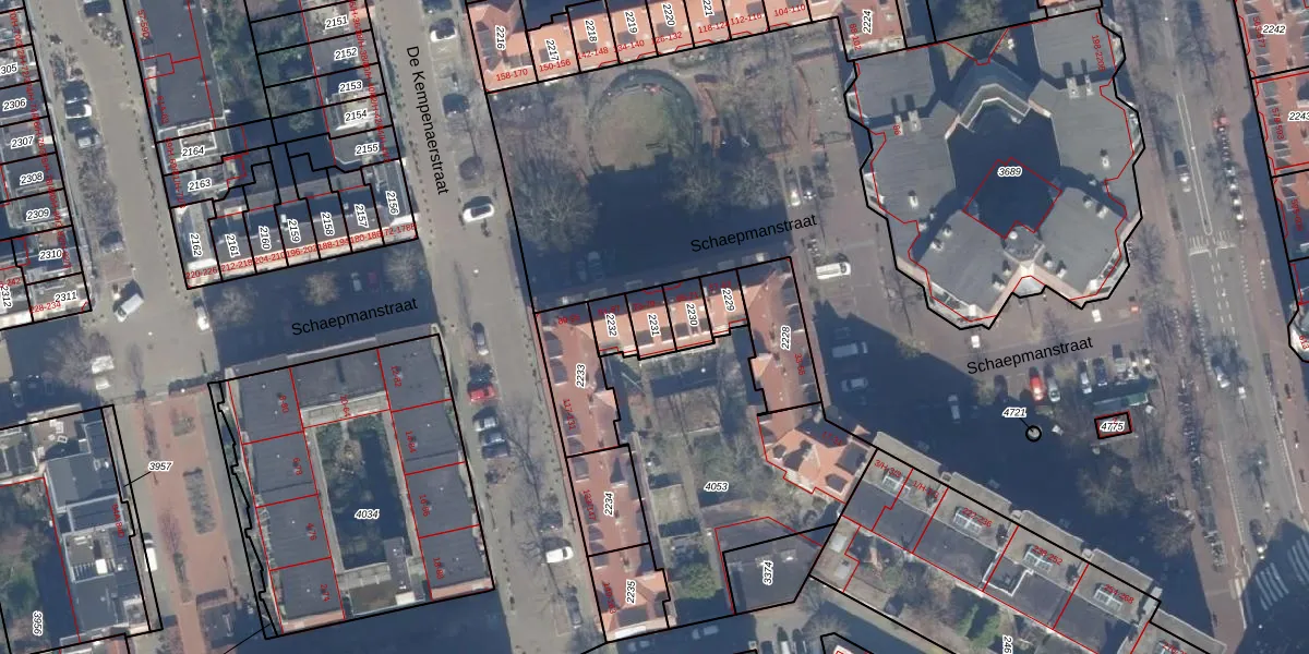 Het perceel waarop Schaepmanstraat 77 staat heeft een oppervlakte van 63 m². Dit is een klein perceel. De perceeloppervlakte wordt geregistreerd door het Kadaster. Gedetailleerde informatie over de maten van dit perceel kunt u vinden in het rapport Kadastrale kaart met maatvoering van Schaepmanstraat 77.