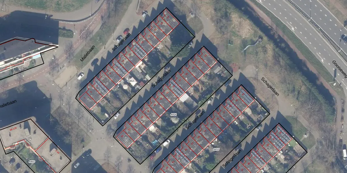 Schagerlaan 39 is gelegen op kadastraal perceel WTG02A4454. Deze kadastrale aanduiding is uniek en wordt gebruikt door het Kadaster om eigendomsrechten en andere zakelijke rechten vast te leggen. Het perceel maakt onderdeel uit van de kadastrale gemeente Watergraafsmeer.