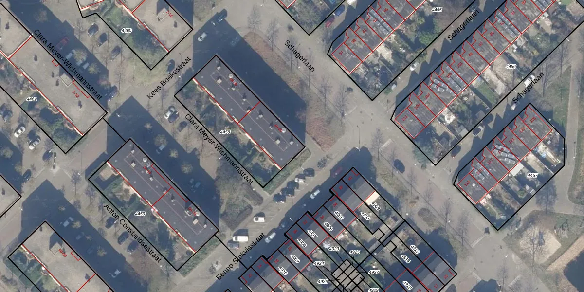 Schagerlaan 46 is gelegen op kadastraal perceel WTG02A4458. Deze kadastrale aanduiding is uniek en wordt gebruikt door het Kadaster om eigendomsrechten en andere zakelijke rechten vast te leggen. Het perceel maakt onderdeel uit van de kadastrale gemeente Watergraafsmeer.