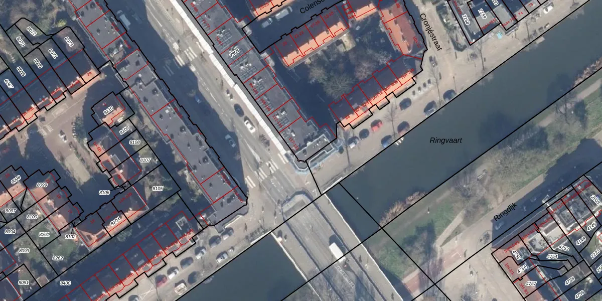 Het adres ligt op het perceel ASD19-W-7806, dat zich in de kadastrale gemeente Amsterdam bevindt. Het perceel is met 4397 m² relatief groot. Het gemiddelde ligt in de kadastrale gemeente Amsterdam op 1563,05 m². Het grootste perceel in de kadastrale gemeente is 17,9 ha. Het kleinste perceel heeft een oppervlakte van 0 m². Er zijn 103 adressen aanwezig op het perceel. De huidige grenzen van het perceel zijn digitaal in de Basisregistratie Kadaster (BRK) geregistreerd op 21-10-1998.