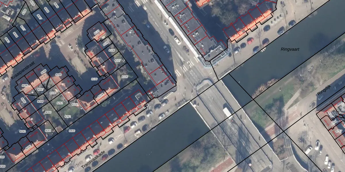 Het adres is gelegen op perceel 8399 in de sectie W en de kadastrale gemeente Amsterdam. De kadastrale aanduiding is aldus ASD19-W-8399. De gemiddelde perceeloppervlakte in de kadastrale gemeente Amsterdam is 1563,05 m². Dit perceel is met zijn 4465 m² dus groter dan gemiddeld. De grootste perceeloppervlakte in de kadastrale gemeente is 17,9 ha. De kleinste oppervlakte bedraagt 0 m². Er zijn 151 adressen aanwezig op het perceel. De laatste wijziging in het de Basisregistratie Kadaster (BRK) was op 03-09-2019.