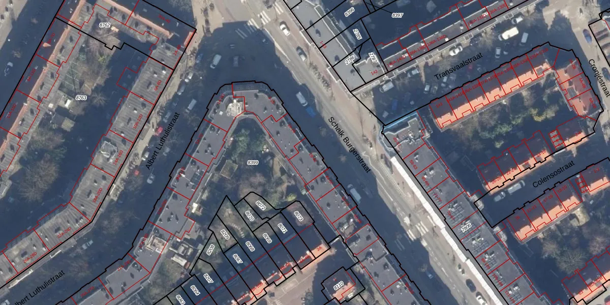 Schalk Burgerstraat 34 is gelegen op kadastraal perceel ASD19W8399. Deze kadastrale aanduiding is uniek en wordt gebruikt door het Kadaster om eigendomsrechten en andere zakelijke rechten vast te leggen. Het perceel maakt onderdeel uit van de kadastrale gemeente Amsterdam.