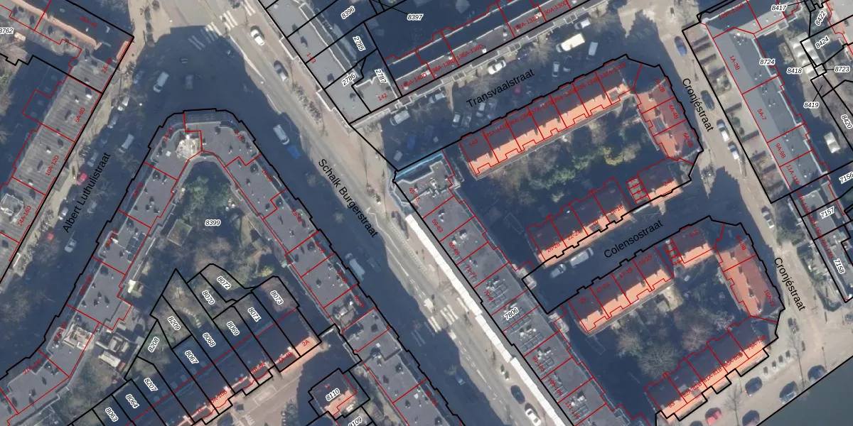 Het perceel waarop Schalk Burgerstraat 57 staat heeft een oppervlakte van 4397 m². Dit is een zeer groot perceel. De perceeloppervlakte wordt geregistreerd door het Kadaster. Gedetailleerde informatie over de maten van dit perceel kunt u vinden in het rapport Kadastrale kaart met maatvoering van Schalk Burgerstraat 57.