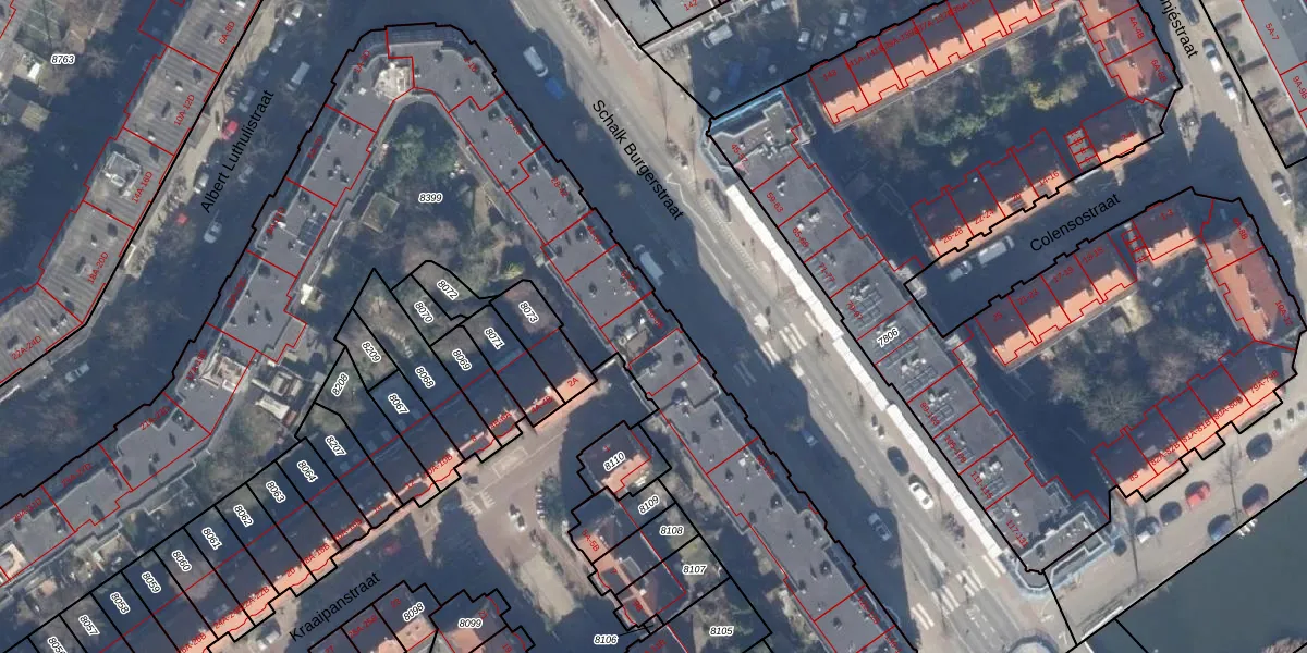 Schalk Burgerstraat 60 is gelegen op kadastraal perceel ASD19W8399. Deze kadastrale aanduiding is uniek en wordt gebruikt door het Kadaster om eigendomsrechten en andere zakelijke rechten vast te leggen. Het perceel maakt onderdeel uit van de kadastrale gemeente Amsterdam.