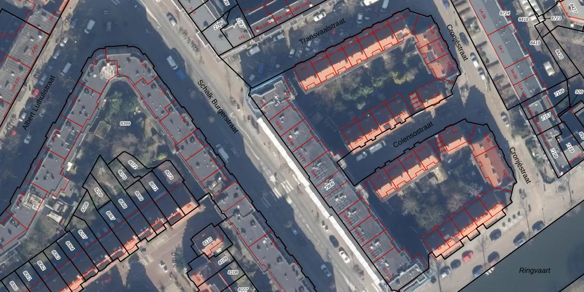 Het adres ligt op het perceel ASD19-W-7806, dat zich in de kadastrale gemeente Amsterdam bevindt. Het perceel is met 4397 m² relatief groot. Het gemiddelde ligt in de kadastrale gemeente Amsterdam op 1563,05 m². Het grootste perceel in de kadastrale gemeente is 17,9 ha. Het kleinste perceel heeft een oppervlakte van 0 m². Er zijn 103 adressen aanwezig op het perceel. In de Basisregistratie Kadaster (BRK) werden de grenzen van het perceel geregistreerd op 21-10-1998.