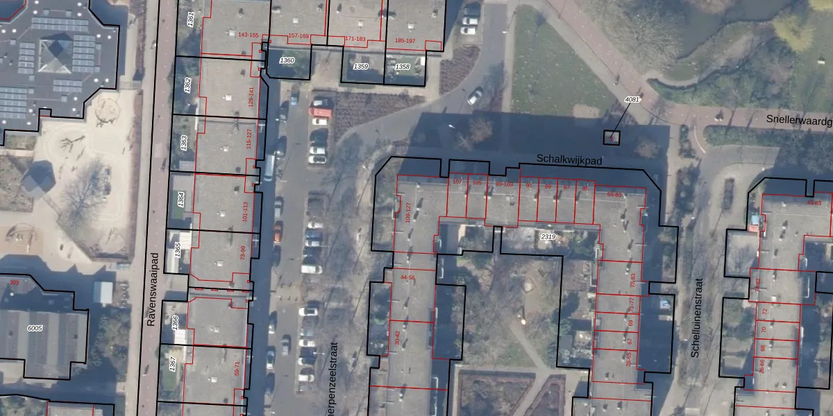 Het perceel waarop Schalkwijkpad 115 staat heeft een oppervlakte van 5037 m². Dit is een zeer groot perceel. De perceeloppervlakte wordt geregistreerd door het Kadaster. Gedetailleerde informatie over de maten van dit perceel kunt u vinden in het rapport Kadastrale kaart met maatvoering van Schalkwijkpad 115.