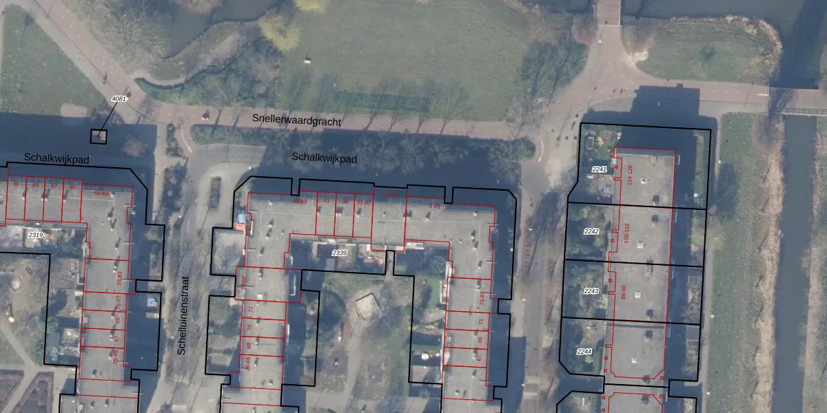 Schalkwijkpad 23 is gelegen op kadastraal perceel WPK02L2339. Deze kadastrale aanduiding is uniek en wordt gebruikt door het Kadaster om eigendomsrechten en andere zakelijke rechten vast te leggen. Het perceel maakt onderdeel uit van de kadastrale gemeente Weesperkarspel.