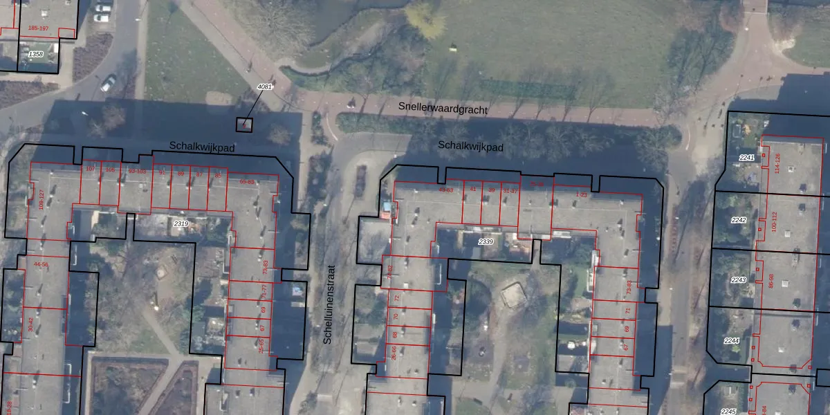 Schalkwijkpad 49 is gelegen op kadastraal perceel WPK02L2339. Deze kadastrale aanduiding is uniek en wordt gebruikt door het Kadaster om eigendomsrechten en andere zakelijke rechten vast te leggen. Het perceel maakt onderdeel uit van de kadastrale gemeente Weesperkarspel.