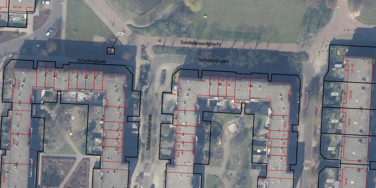 Schalkwijkpad 53 is gelegen op kadastraal perceel WPK02L2339. Deze kadastrale aanduiding is uniek en wordt gebruikt door het Kadaster om eigendomsrechten en andere zakelijke rechten vast te leggen. Het perceel maakt onderdeel uit van de kadastrale gemeente Weesperkarspel.